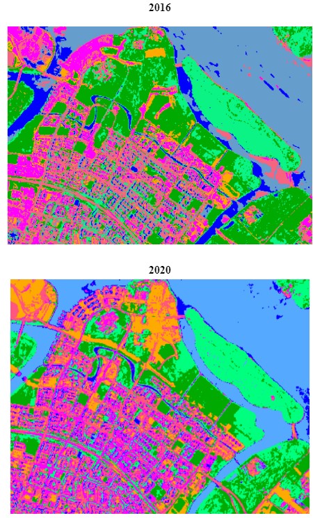 Next, Supervised Classification is performed using the SCP plugin and the result of the classification output for 2016 and 2020 is as shown below.