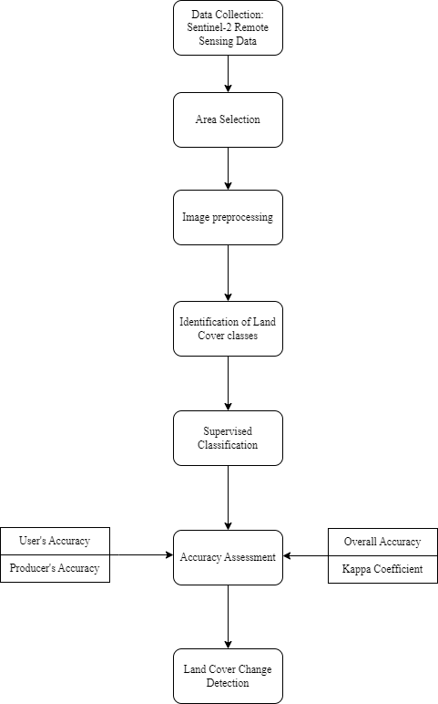 The following image shows the approach taken by the team to perform the Land Cover Change Detection analysis.